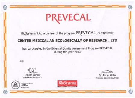 При проведении лабораторных исследований большое значение имеет точность и качество полученных результатов, так как на их основании врач принимает решение, от которого могут зависеть здоровье, а в некоторых случаях и жизнь пациентов. Поэтому для подтверждения качества выполняемых исследований лаборатория «ЦМЭИ» на протяжении года участвует в Международной программе внешней оценки качества PREVECAL (Испания).